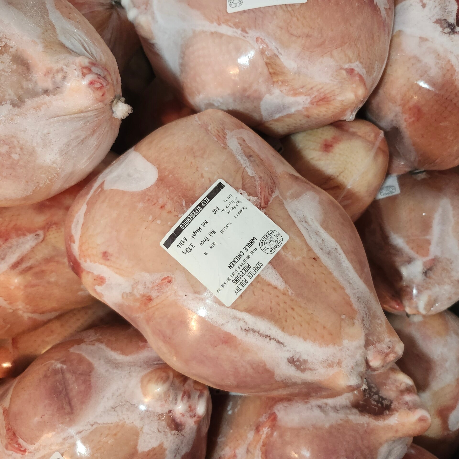 Farm Fresh Chicken, raised on pasture with non GMO holistic feeds, and fresh fruit and veggies daily. No meds and no antibiotics, our birds live their best lives !